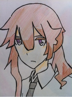 外見・・・赤茶色のセミロングで後ろ髪を結んでいる。 目の色は赤紫。